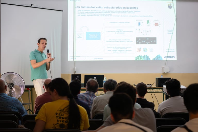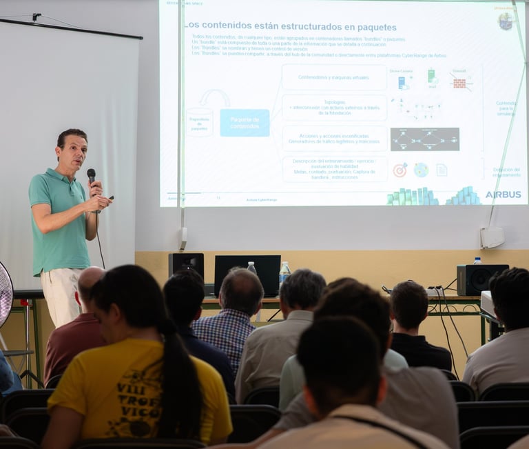 Presentación de profesionales de prestigio de: Siemens Energy, Fortinet, Zerolynx, Bluntcore, Telefónica Tech, S21Sec, Tecnicas Reunidas, Titanium Industrial, FCC, Delonia Software y Airbus.